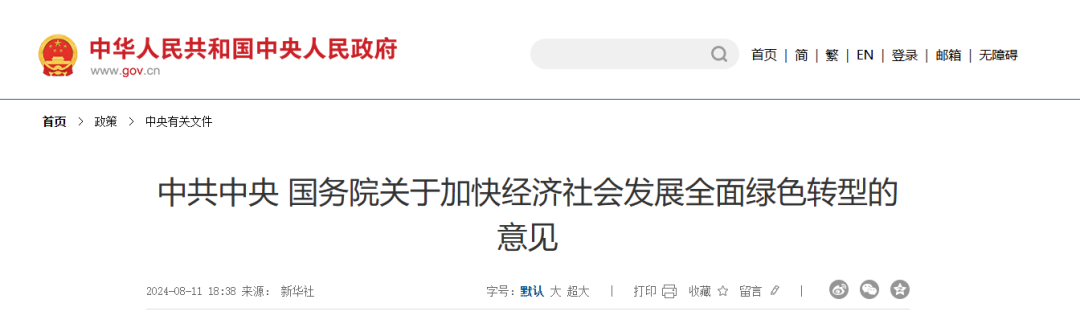 中共中央 国务院关于加快经济社会发展全面绿色转型的意见